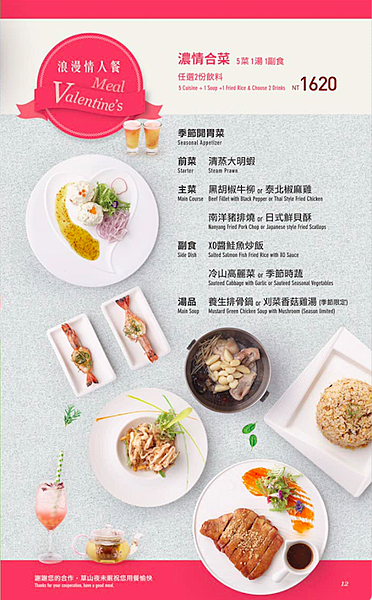 本次點的菜單如圖:圖片取自官網、唯不同的是副食