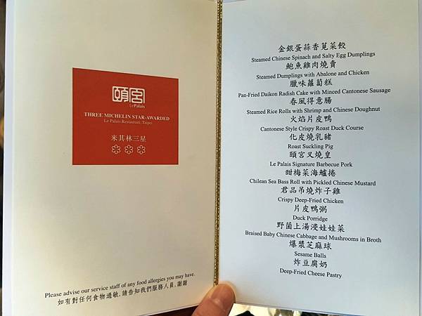 *總結:頤宮的服務真的好得沒話說,從一上電梯出來,就親切為您帶位、用餐全程中的服務生:『俊豪』(不知道有沒有打錯字)服務品質超夠水準、從介紹菜色、包卷餅、倒茶甚至是倒酒,服務沒有可挑剔之處,補酒的時間點也都很好,這些對於曾在飯店有打工經驗的我,完全看在眼裡;包廂的午餐低消是2萬,如果是8人以上建議可以預約包廂、十分舒適也有廁所、還可看外面的景。