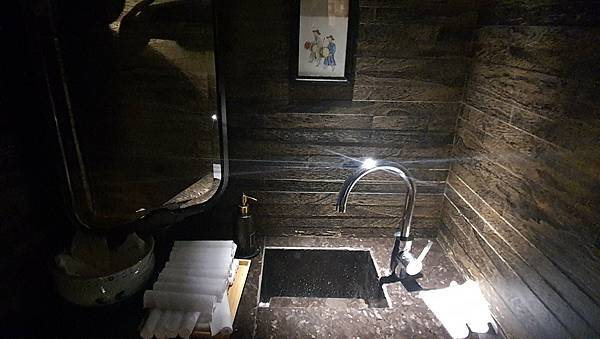 *包廂內即有廁所:有擦手毛巾相當貼心、可惜鏡子上方燈光過暗