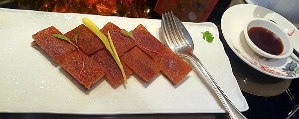 *烤鴨第二吃是吃鴨腿的部分,附上梅醬、醬汁味道偏重、單吃烤鴨就可吃到優異的烤功、皮脆油都被逼出來沒有油膩感~