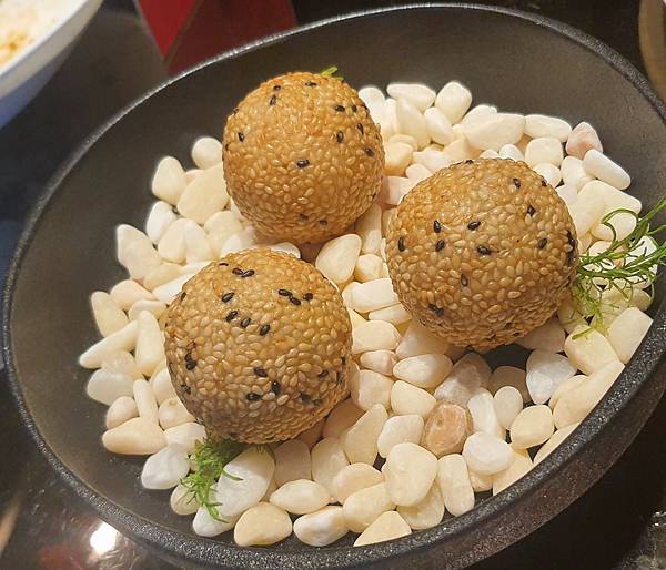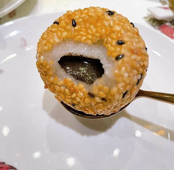 *爆漿芝麻球:真的是列為必點之一耶!完全跟外面芝麻球不一樣、不喜歡吃外面芝麻球的我,頤宮的皮超脆輕輕咬開就可看到爆漿!