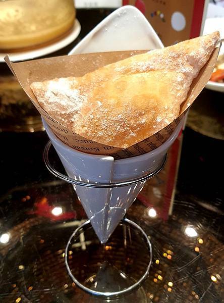 *炸豆腐奶: 這道應該是招牌甜點第一名吧!內餡跟名稱不太一樣、完全沒有豆腐哦!裡面有兩種起司外面撒一點糖霜~