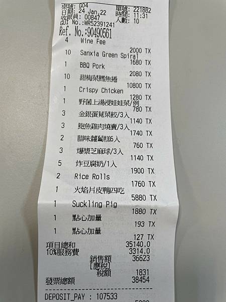 *本次帳單~真的是三星價格,以cp值來說火焰片皮鴨吃過一次即可、其他很多菜都是不錯值得吃的!而且仔細發現2022的菜單價格又比2021高了一些,如果再跟多年前菜單價格比真的會被嚇到啊![]()