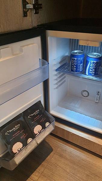 *冰箱內有面膜!!真是超驚喜~另外有寶礦力很適合泡湯喝; 右圖下方的金棗&三和蔬食的蔥餅(這是當月壽星提供的),如果可以其實私心希望有個小卡片單純寫個Happy Birthday附上會更令人開心!