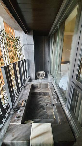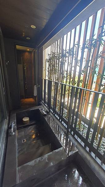 *另外一個角度看泡湯池也是很不錯、旁邊為浴室備品,沐浴洗髮為晶華集團的沐蘭系列